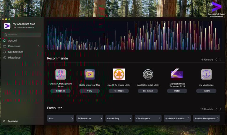 Dans cette mission, mon travail consiste à installer les machines pour les Octos. Les différentes machines que j'installe sont des MacBook Air M4 et des HP EliteBook G11. Dans ces installations, je dois aussi ajouter le MDM fourni par Accenture pour que les utilisateurs respectent les règles de sécurité et éviter tout vol ou fuite de données.