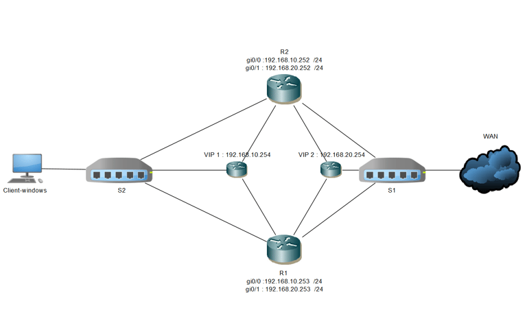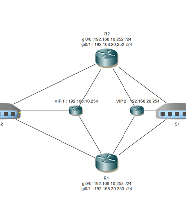 Implémentation du protocole HSRP pour garantir la continuité de la connexion Internet en cas de panne d'un équipement, grâce à la mise en place d'une redondance au niveau des routeurs.