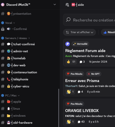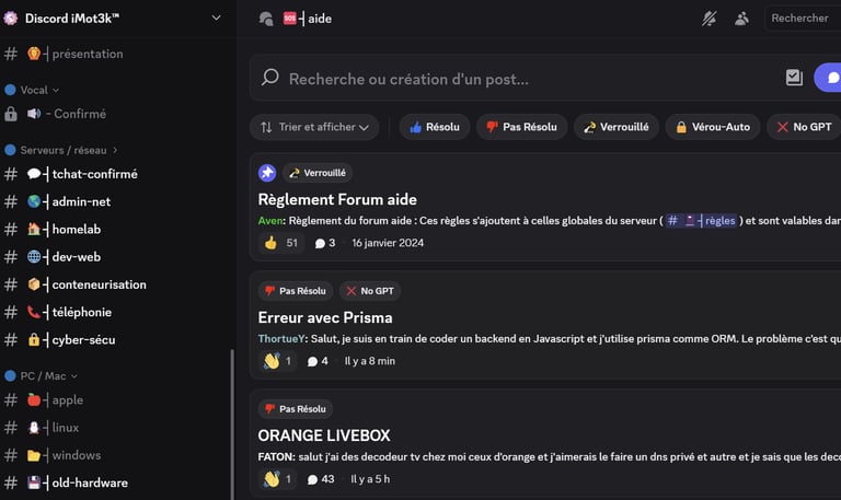 Discord est une plateforme de discussion populaire (chat, voix, vidéo) organisée par "serveurs" thématiques. Sa force réside dans ses nombreux serveurs communautaires spécialisés sur des sujets précis, qui permettent d'échanger directement avec d'autres passionnés et d'obtenir rapidement des informations ou de l'aide pointue.